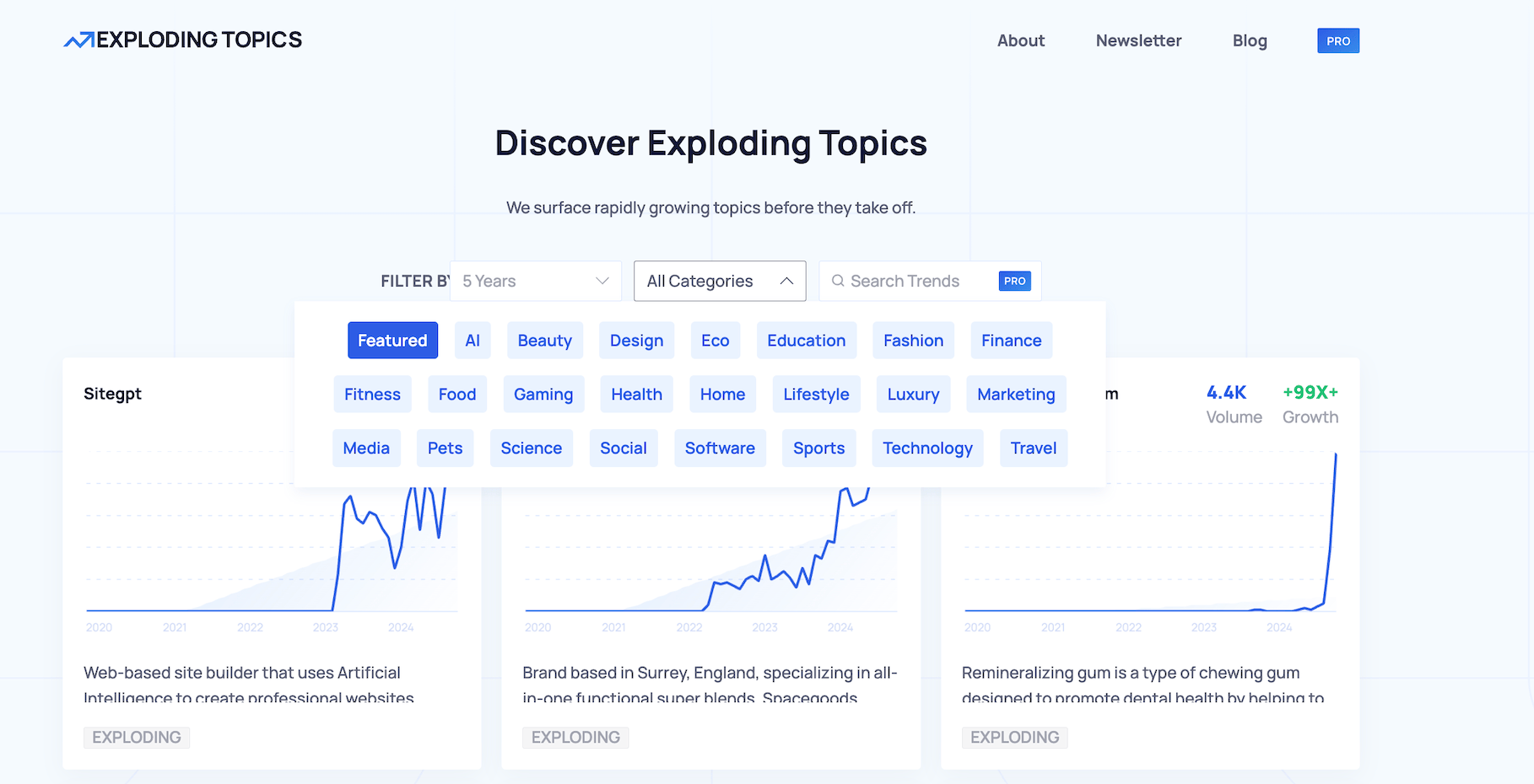 Exploding Topics is another tool that provides early trend insights across various industries.