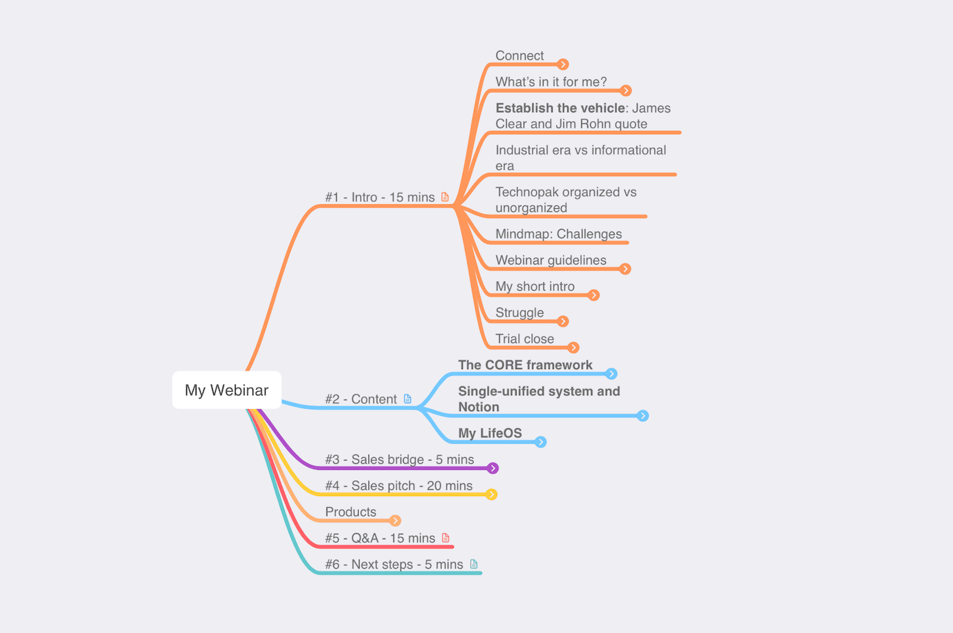 For instance, if you’re presenting the C.O.R.E Framework during your webinar, introduce the core elements early on and then briefly shift the discussion to a related webinar topic.