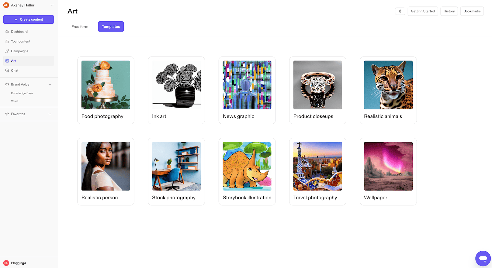 - Dynamic templates: With Jasper, in addition to predefined templates, you can create custom templates that generate multiple input boxes for you to generate content based on your prompt.