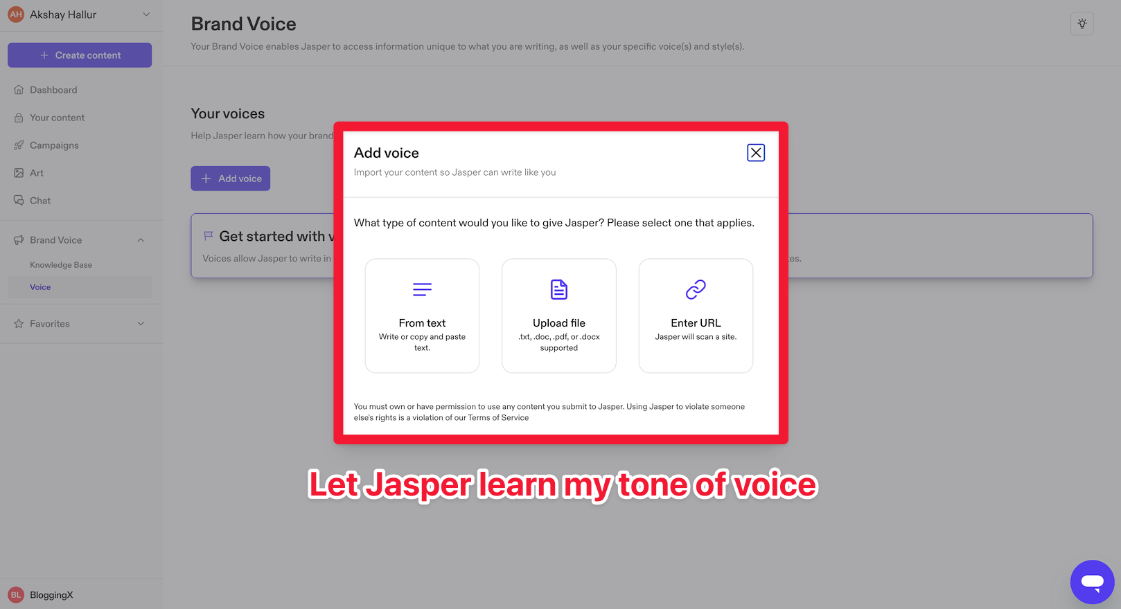 Voices allow Jasper to write in the tone and style of your brand.