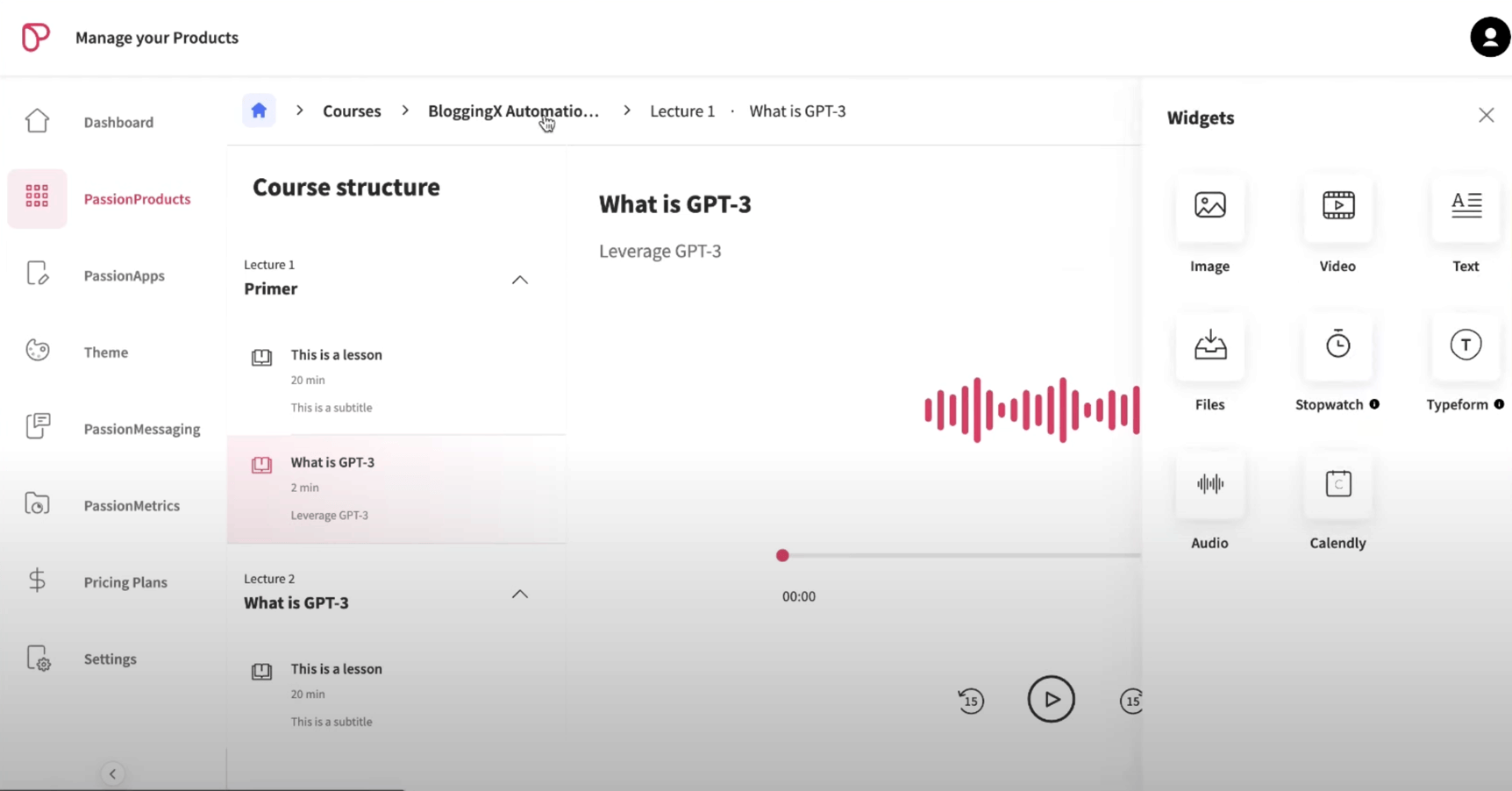 Just like other course builders out there, you’ll need to put your lessons inside modules or sections in Passion.