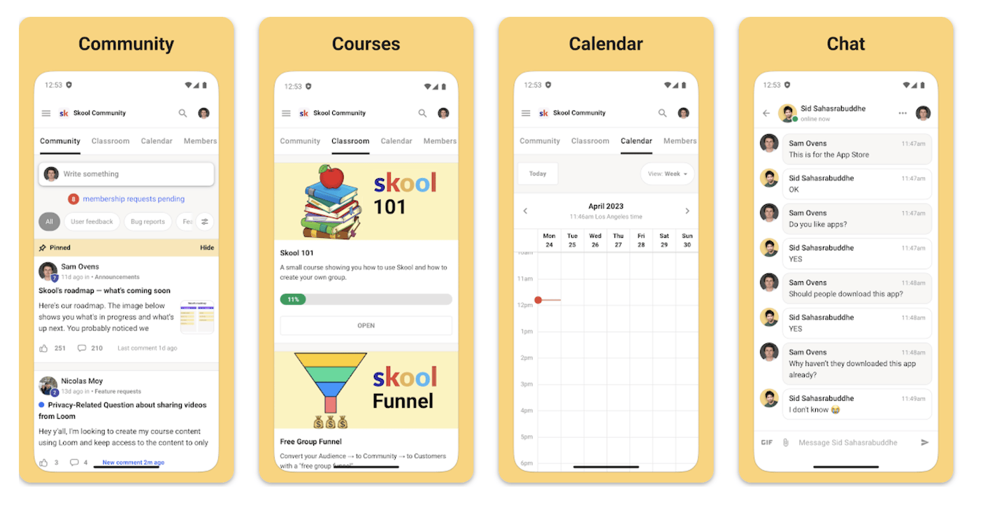 As I told you, Skool comes with apps for both iOS and Android. They are feature-rich!