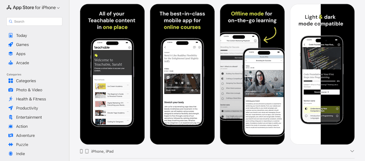 Teachable offers iOS and Android apps for students.